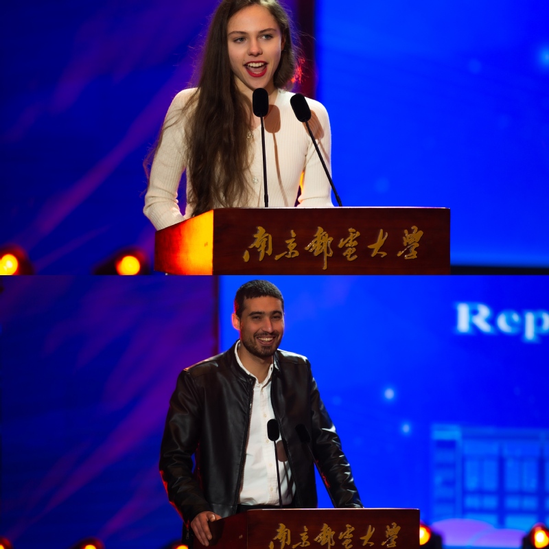 24名江苏省政府奖学金获得者和60名南京市政府奖学金获得者依次上台领取证书。2020级本科留学生Nina Rodakina、2021级硕士研究生Rachid Karakhi分别发言。