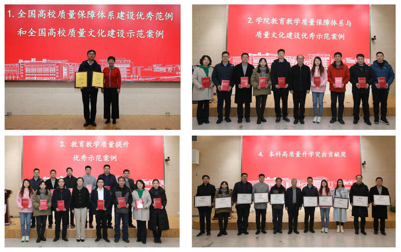 大会举行了表彰仪式,对学校获全国高校质量保障体系建设优秀范例和全国高校质量文化建设示范案例、学院教育教学质量保障体系与质量文化建设优秀示范案例、教育教学质量提升优秀示范案例、本科高质量升学突出贡献奖等奖项的相关单位进行颁奖。