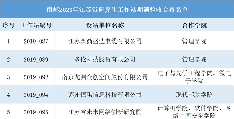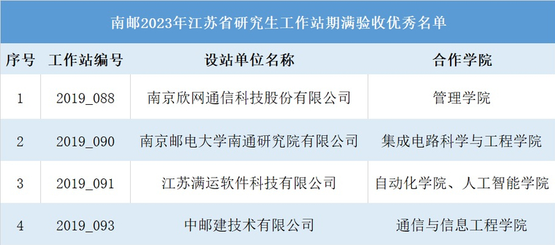 1月5日,接省教育厅、省科技厅2023年江苏省研究生工作站期满验收结果的通知,南京邮电大学与企业共建的9个研究生工作站顺利通过期满考核,其中4个研究生工作站获评优秀,获评优秀数量全省高校排名第一。截至目前,我校共获评11个江苏省优秀研究生工作站和1个江苏省优秀研究生工作站示范基地。