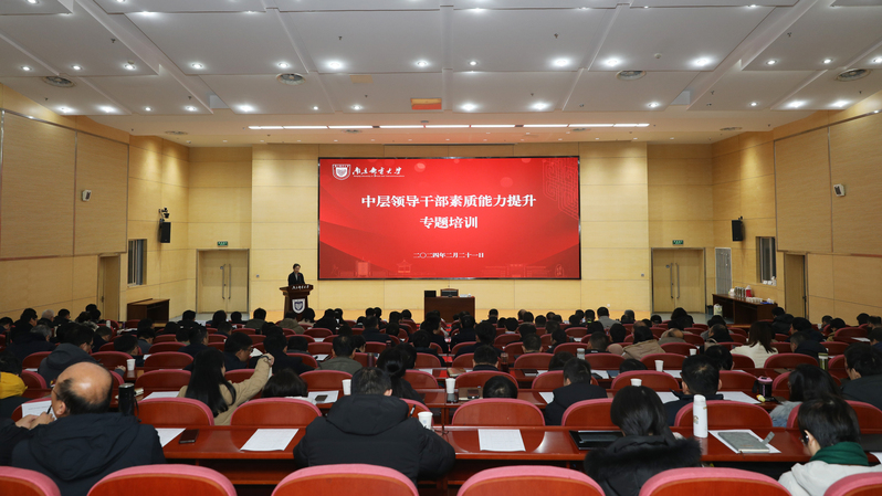 2月21日至22日,学校在仙林校区图书馆报告厅举办中层领导干部素质能力提升专题培训班。全体中层领导干部参加培训。培训由校党委常委、副校长谢平主持。
