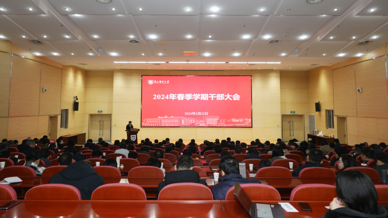2月22日下午,我校召开2024年春季学期干部大会。全体校领导、中层干部在仙林校区图书馆报告厅出席会议。会议由校长叶美兰主持。大会回顾总结了学校2023年度工作落实和完成情况,全面部署2024年度重点工作。