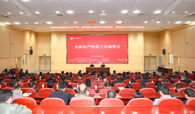 3月27日下午,我校在仙林校区图书馆报告厅召开2024年全面从严治党工作部署会暨警示教育大会、“机关工作作风建设年”专项行动动员会。全体校领导,党委委员、纪委委员,中层干部,部分岗位科级干部参加会议,校党委副书记蒋国平主持会议。
