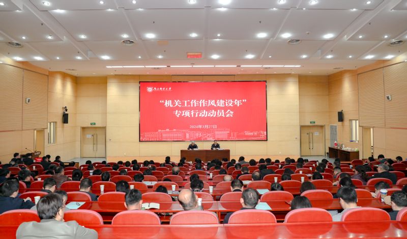 郭宇锋书记指出,为进一步加强学校机关作风建设,引导机关干部树牢“以师生为中心”的理念,经学校党委研究决定,2024年3月至12月,开展“机关工作作风建设年”专项行动。专项行动主要从学习教育、检视整治、巩固提升三个维度进行安排与筹划,重点开展“最多跑一次”“严格考勤管理”“担当作为、提能增效”三大专项行动,切实把作风建设成效体现在提高工作能力、高质量完成各项工作上。