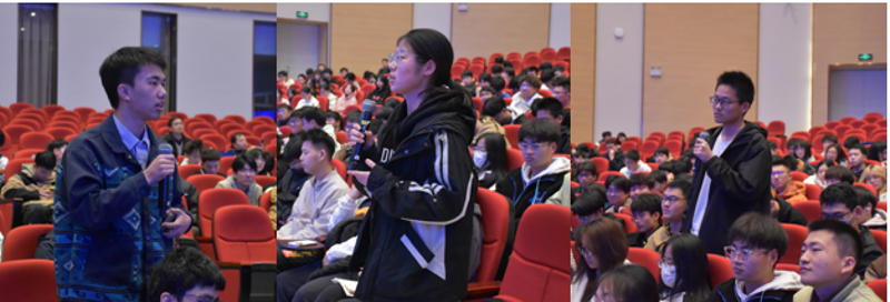 秦厚荣教授结合四次工业革命发展史,阐述了数学等基础科学在历次工业革命中发挥的关键作用;着重介绍了人类文明史上标志性著作《几何原本》的产生背景、流传过程,特别是在中国的传播情况;讨论了从第五公理到非欧几何、黎曼几何,从素数无穷多到素数定理,并结合个人研究成果介绍了黎曼假设的最新研究进展。秦教授旁征博引,报告生动有趣,同学们积极参与,踊跃提问,现场气氛热烈。