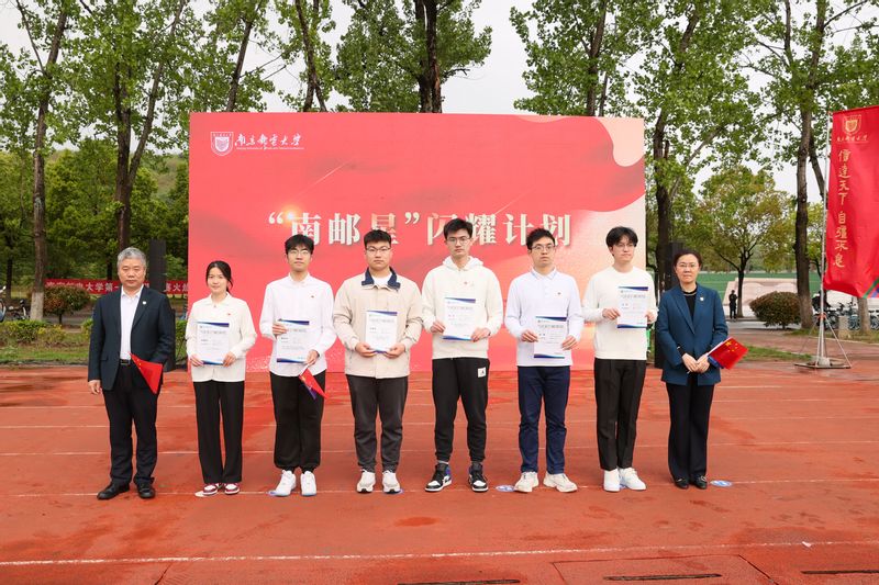 旭日东升,鲜艳的五星红旗在仙林校区南区运动场迎风升起,现场师生代表400余人共唱国歌。随后,校党委书记郭宇锋,校党委常委、副校长谢平为在专业学习、考研升学、学科竞赛等方面取得优秀荣誉或成果、并入选2024届“南邮星”闪耀计划的毕业生代表颁发“南邮星卡”。