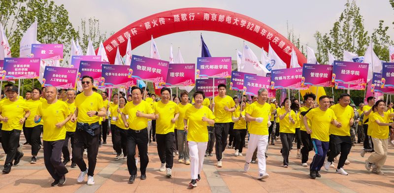 4月20日上午,我校举行恒隆通信杯“薪火传·踏歌行”82周年校庆健身跑活动,活动包括精英跑、接力跑、校园跑和线上跑四种形式。5000余名师生校友代表齐聚南邮、奋力奔跑,海内外的校友通过咪咕善跑APP开展“线上跑”。他们用一段酣畅淋漓的奔跑,共同为母校献上诚挚的祝福。