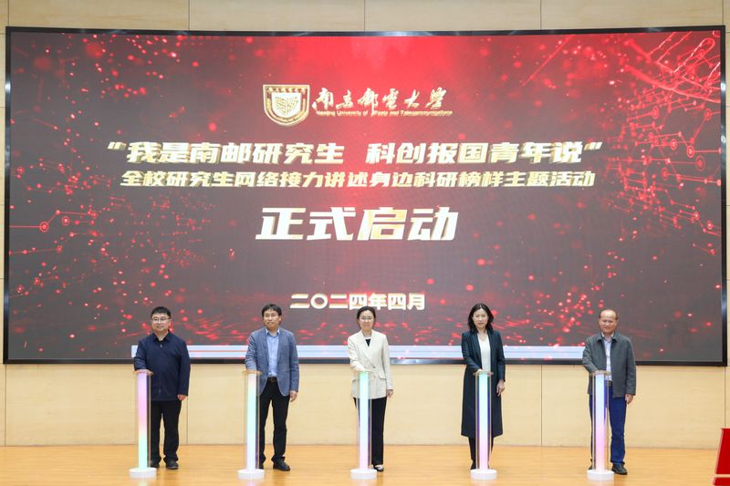 启动仪式上,谢平副校长,党委宣传部、研究生院、一流学科与高水平大学建设办公室、党委研究生工作部等部门负责人共同为“我是南邮研究生 科创报国青年说”全校研究生网络接力讲述身边科研榜样主题活动启幕。研究生代表闫瑾同学对主题活动作响应发言。