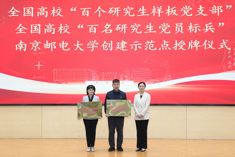 大会上,谢平副校长为全国高校“百个研究生样板党支部”、“百名研究生党员标兵”南京邮电大学创建示范点授牌。