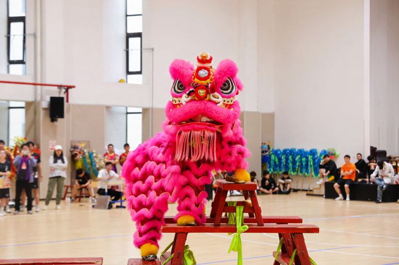 龙狮团队员自主编排的传统南狮节目《步步登高》,展示了醒狮克服万难、不畏艰险、勇攀高峰的故事。伴随着一声声铿锵有力的锣鼓声,醒狮时而腾空飞跃、时而俯身蠕行,将狮子喜、怒、惊、疑、乐等多种神态展现得淋漓尽致,惟妙惟肖,充分表现出了队员的深厚功底,展现了南邮学子自强自信的精神风貌,获得评委的一致认可。