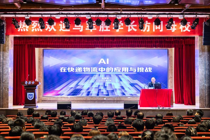 在华礼堂,马军胜校友作主题为“AI在快递物流中的应用与挑战”的精彩报告,报告会由姜小舜副校长主持,三牌楼校区近六百名师生聆听了报告。