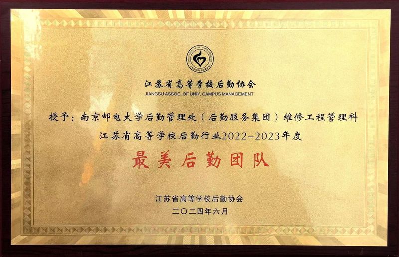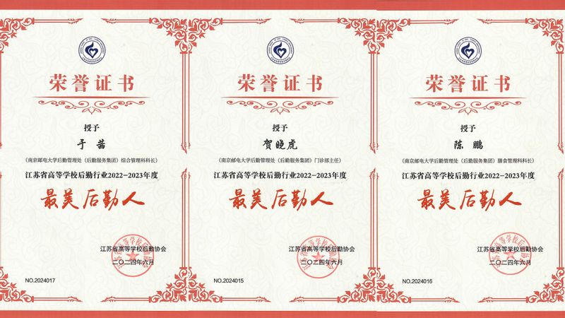 6月2日,2022-2023年度江苏省高校最美后勤人(团队)发布会在苏州举行,我校后勤管理处维修工程管理科荣获“最美后勤团队”称号,于茜、贺晓虎、陈鹏3名同志获“最美后勤人”称号。