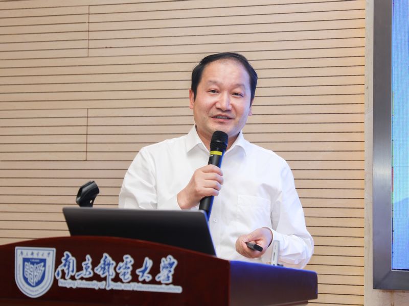 江苏省教育厅副厅长杨树兵讲话,代表省教育厅对会议的召开表示热烈祝贺,对长期以来一直关心和支持江苏高等教育事业发展的信息通信行业企业的领导和专家表示衷心感谢。杨树兵副厅长在讲话中强调,人工智能是引领新一轮科技革命和产业变革的战略性技术,对教育、科技、产业发展和人类生活方式产生了重大深远的影响。江苏是高等教育大省,在教育改革创新方面,一直勇于担当、敢为人先,争做试验田和桥头堡。“十四五”期间,江苏主动响应数字智能时代人才培养新需求,推进人工智能与高校教学科研深度融合,为做好科技创新和产业创新两篇大文章提供人才和智力支撑。希望南京邮电大学充分发挥学科专业优势,科学论证、精心设计课程体系和培养方案,着力加强师资队伍和教学资源建设,实现“人工智能”和“创新人才培养”深度叠加、融合增效,为打造具有江苏特色、国内领先水平的“人工智能+”人才培养创新方案走在前、做示范。