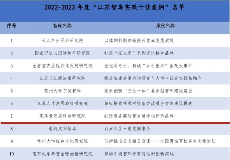 江苏省智库“双十佳”评选由省委宣传部、省哲学社会科学界联合会共同举办,是江苏智库界每两年一度的“思想盛宴”。本次入选“智库实践十佳案例”和“智库研究十佳成果”,是对研究院以高质量智库成果服务省委省政府决策的充分肯定,也激励研究院聚力创新,奋楫笃行,努力把“高质量发展考核评价”的智库品牌擦得更亮、做得更响。
