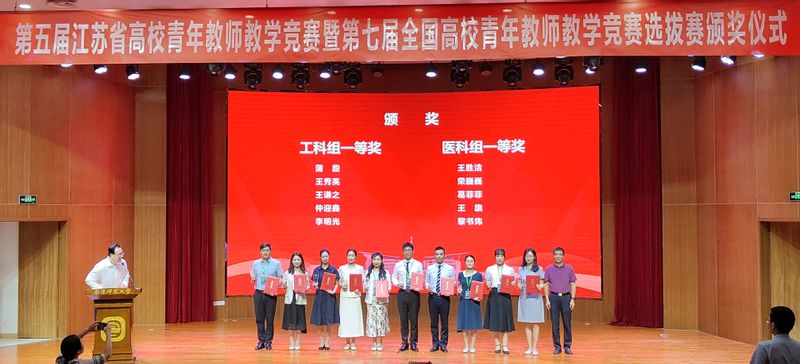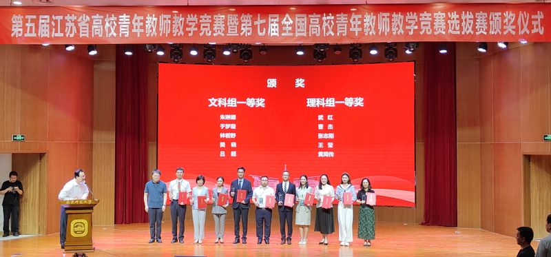 武红老师(左三)获第五届江苏省高校青年教师教学竞赛理科组一等奖第一名