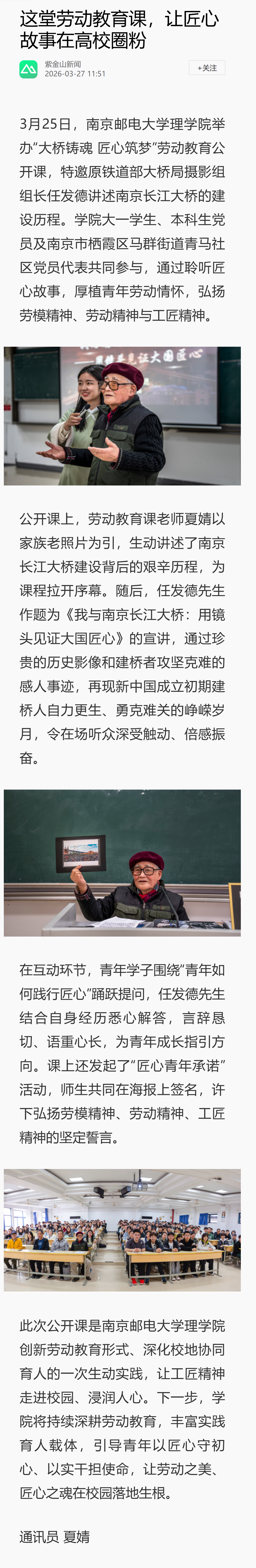 【紫金山新闻】这堂劳动教育课,让匠心故事在高校圈粉