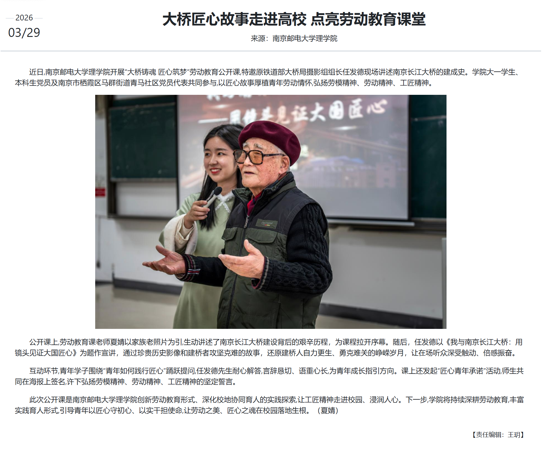 【新华网】大桥匠心故事走进高校 点亮劳动教育课堂