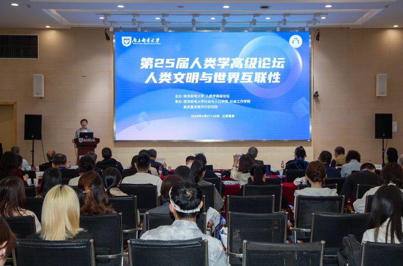 4月18日,以“人类文明与世界互联性”为主题的第25届人类学高级论坛在南京举行。论坛由南京邮电大学、人类学高级论坛主办,南邮社会与人口学院、社会工作学院,高质量发展评价研究院,江苏省应天人口安全与健康管理研究院联合承办。来自全国高校和科研院所的百余位人类学、社会学及相关学科专家学者齐聚金陵,围绕人类文明互鉴、生态智慧、文化多样性、人工智能等核心议题展开深入研讨。南邮副校长姜小舜主持开幕式。