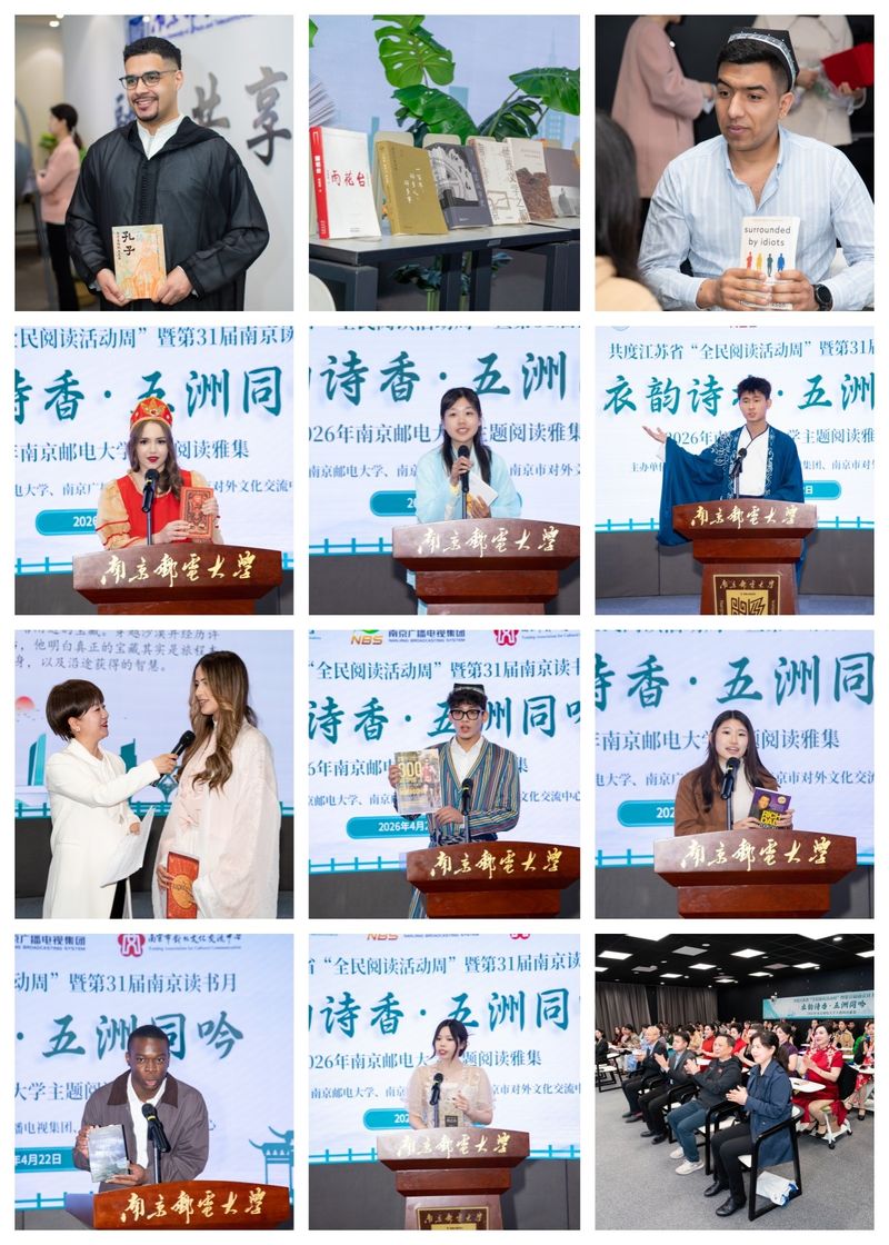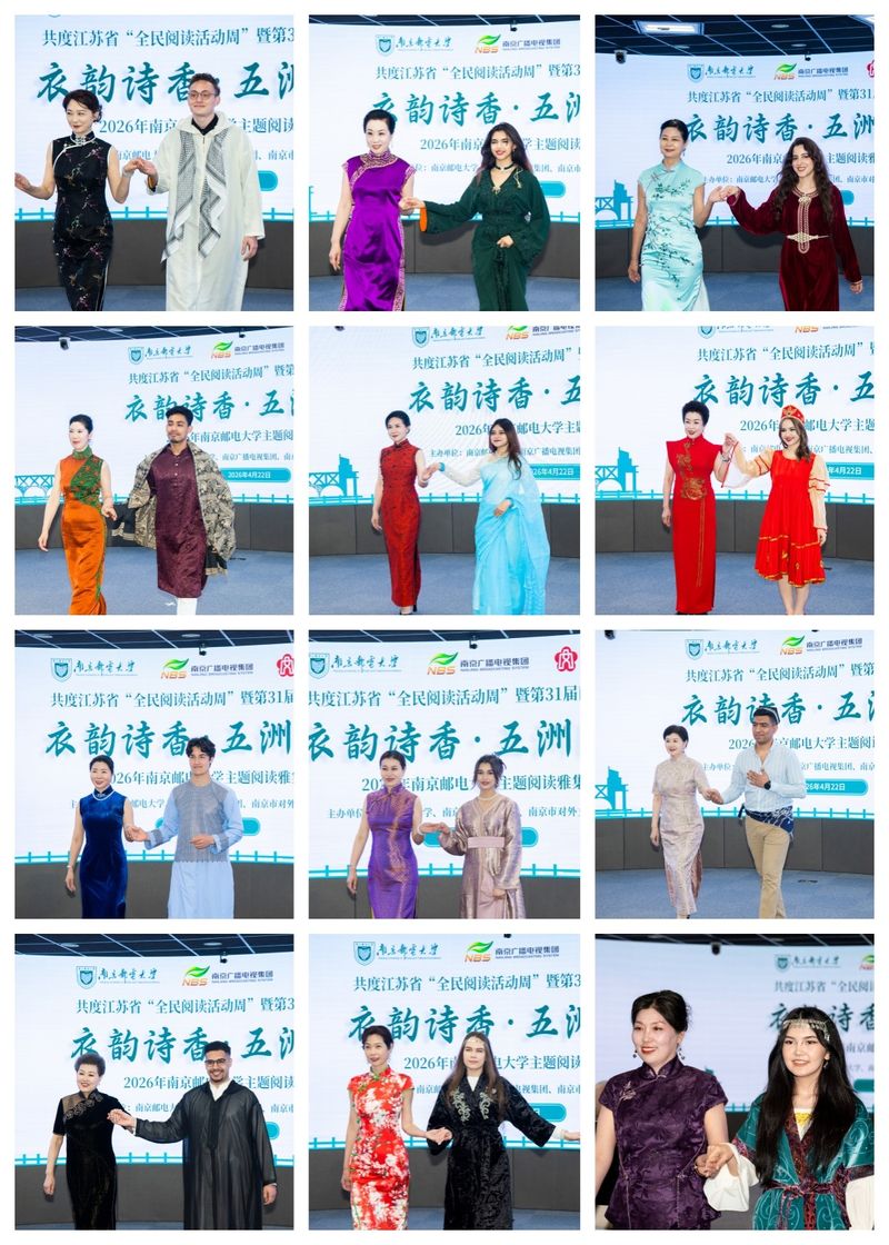 4月22日下午,由南京邮电大学、南京广播电视台及南京市对外文化交流中心共同主办,图书馆、海外教育学院承办的“衣韵诗香·五洲同吟”主题阅读雅集暨南京邮电大学2026年“阅读文化节”启动仪式在融创教学共享空间举行。南邮副校长胡纵宇,南京市对外文化交流中心秘书长戎沛,南京广电集团民生事业部主任、十八频道总监马岳清,海外教育学院、波特兰学院、欧洲塞浦路斯学院、图书馆负责人和中外师生代表出席活动。